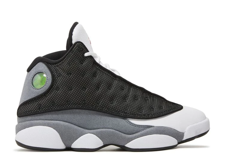 The Air Jordan 13 Retro ‘Black Flint’ dresses the legacy model in OG-inspired color blocking reminiscent of the ‘Flint’ colorway from 1998. Black mesh overlays dominate the upper, featuring a white leather toe box with synthetic grey suede along the midfoot and collar. A crimson Jumpman decorates the white leather tongue, while the 13’s holographic ‘cat eye’ graces the lateral ankle. Anchoring the sneaker is a panther paw outsole, fitted with white herringbone traction pods and an exposed carbon fiber shank plate.