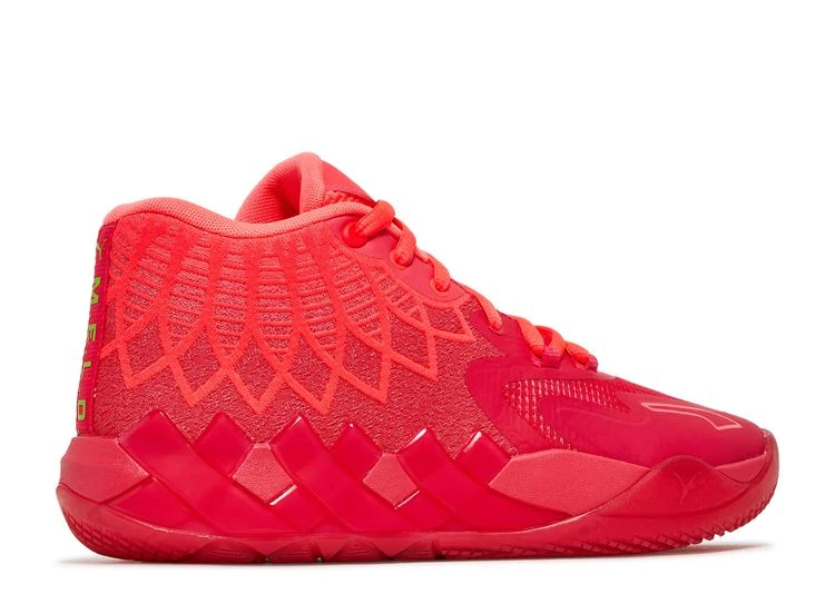The Rick and Morty x PUMA MB.01 pays tribute to LaMelo Ball’s favorite Adult Swim program. The NBA athlete’s debut signature shoe features a mismatched design that pairs a neon green finish on the left shoe with a vibrant crimson finish on the right. The engineered mesh upper is marked with Rick and Morty branding atop the toe box, along with graphics inspired by the show on the lace guard. Lightweight cushioning is provided by a full-length Nitro Foam midsole.